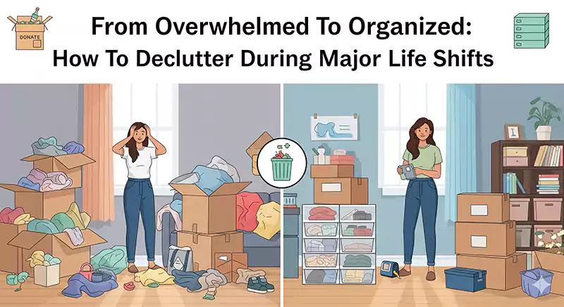 Decluttering during a big life change isn’t easy. It stirs up memories, emotions, and sometimes even grief. But it can also be a turning point. You’re not just letting go of things. Keep in mind that you’re, in fact, clearing space for new experiences, new routines, and a new chapter in life.